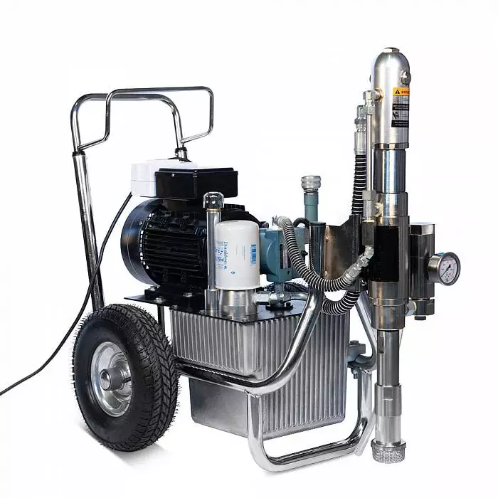 Аппарат для покраски HYVST SPT 8200E (220 V) с гидравлическим приводом предназначен для нанесения красок, лаков шпаклевочных и грунтовых составов высокой вязкости на основания из дерева, бетона, пенобетона, пластика, композитных материалов. Оборудование используется при проведении огнезащитных, гидроизоляционных работ, а также для создания антикоррозионного барьера на металлических поверхностях.