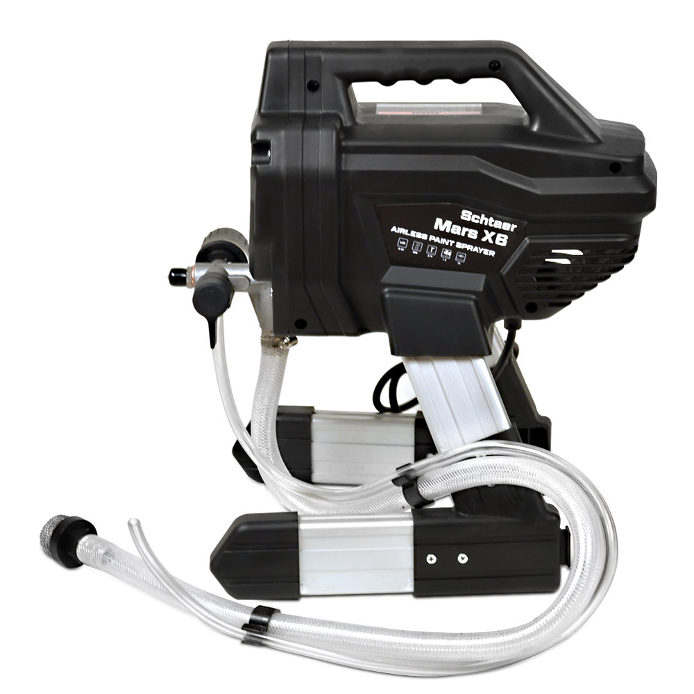 Schtaer Mars X6 - поршневой окрасочный аппарат для начального и профессионального использования при покраске небольших объектов, например, квартир, дач, коттеджей, заборов, бань и прочих строительных объектов. Окрасочный аппарат применяется с любыми стандартными красками низкой и средней вязкости, которые вы можете найти в обычном строительном магазине. Окрасочный аппарат не требует специальных знаний и навыков для покраски небольших объемов. Для его запуска в работу вам понадобится ведро с краской, 2-3 литра растворителя или воды ( в зависимости от того, чем ваша каска растворяется), электрическая розетка и 3-5 сопел с различным проходным сечением и шириной факела.